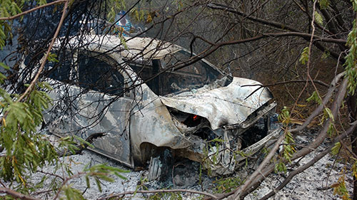 Carro sai da pista, cai em ribanceira e pega fogo na BR – 030; trecho entre Brumado e Sussuarana